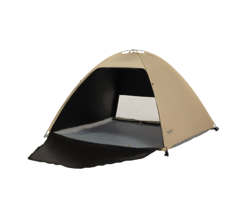 アウトドアの活用はもちろんですが、避難先でのプライベートな空間を確保するテントとしても活用できる製品です。フルクローズすることでお着替えの際にも使用可能です。圧迫感なく、軽量モデルのフレーム構造となっており、内側はブラックコーティングで遮蔽率、遮光率がアップしております。UPF50+で紫外線をカットするため、日差しの強い浜辺、公園などのレジャーや、避難先の屋外、屋内で使用いただけます。